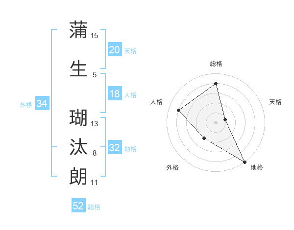 蒲生 瑚汰朗さんの総格は52画の4点!