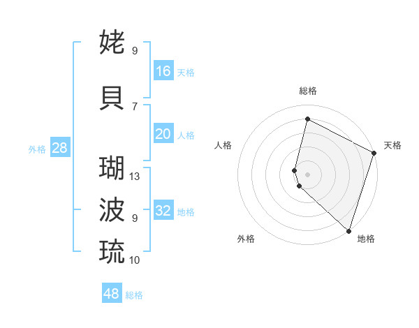 姥貝 瑚波琉さんの総格は48画の4点!