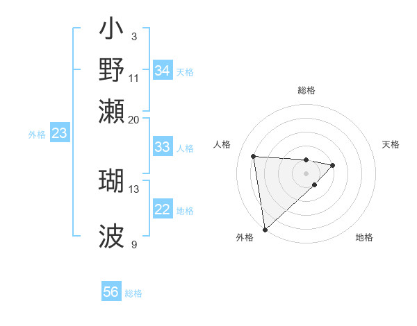 小野瀬 瑚波さんを姓名の画数から五運を鑑定