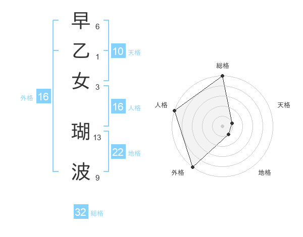 早乙女 瑚波さんの外格は16画の5点!