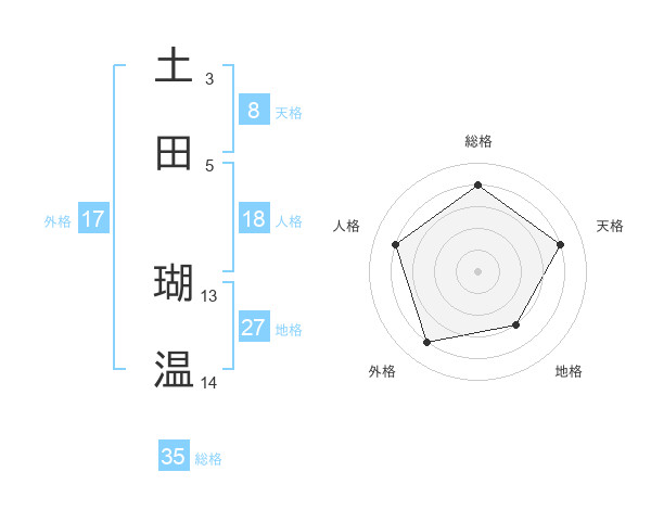 土田 瑚温さんを姓名の画数から五運を鑑定
