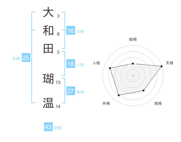 大和田 瑚温さんを姓名の画数から五運を鑑定