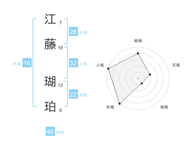江藤 瑚珀さんの総格は48画の4点!