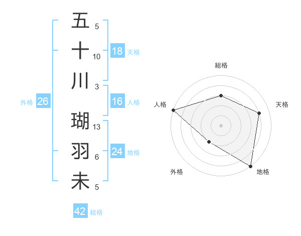 五十川 瑚羽未さんを姓名の画数から五運を鑑定