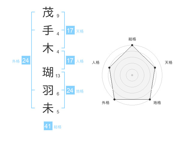 茂手木 瑚羽未さんの天格は17画の4点!