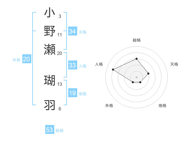 小野瀬 瑚羽さんを姓名の画数から五運を鑑定