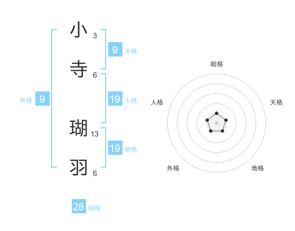小寺 瑚羽さんの総格は28画の1点!