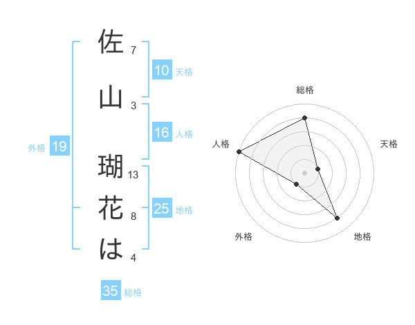 佐山 瑚花はさんを姓名の画数から五運を鑑定