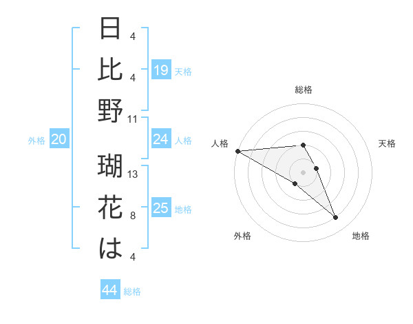 日比野 瑚花はさんを姓名の画数から五運を鑑定