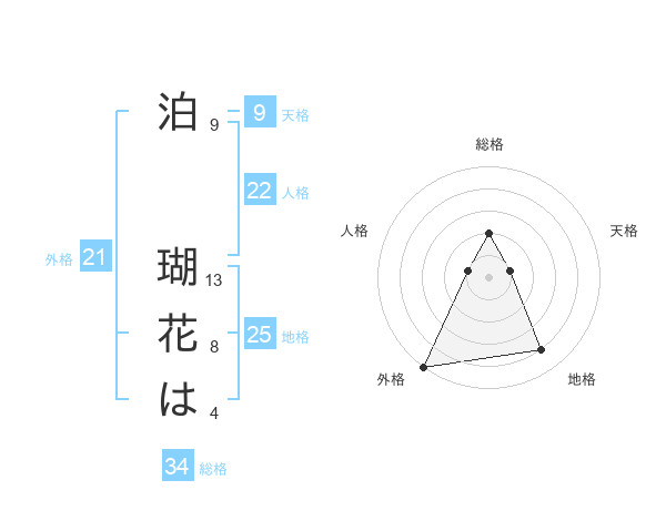 泊 瑚花はさんの総格は34画の2点!
