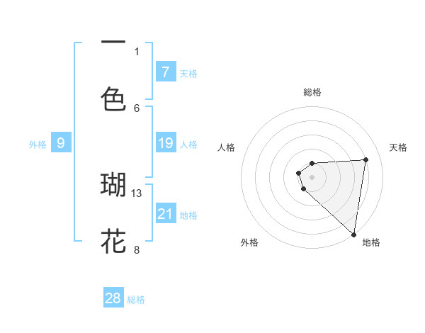 一色 瑚花さんを姓名の画数から五運を鑑定
