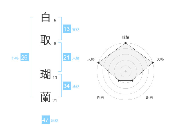 白取 瑚蘭さんの総格は47画の5点!