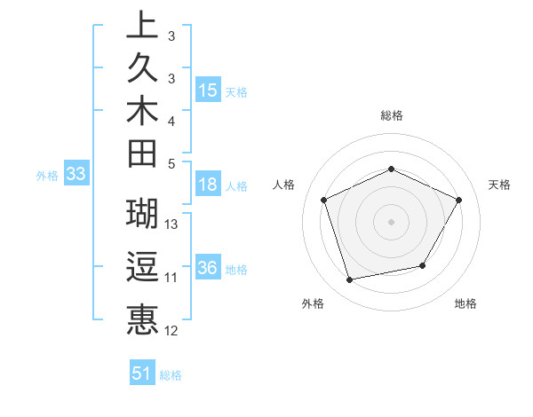 上久木田 瑚逗惠さんの総格は51画の3点!