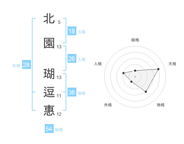 北園 瑚逗惠さんを姓名の画数から五運を鑑定