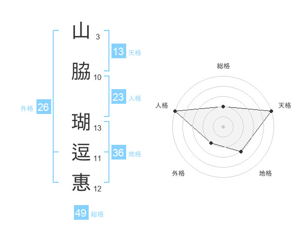 山脇 瑚逗惠さんを姓名の画数から五運を鑑定