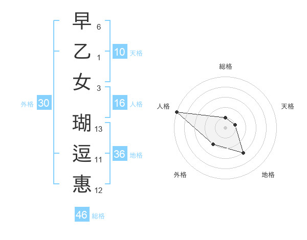 早乙女 瑚逗惠さんの総格は46画の1点!