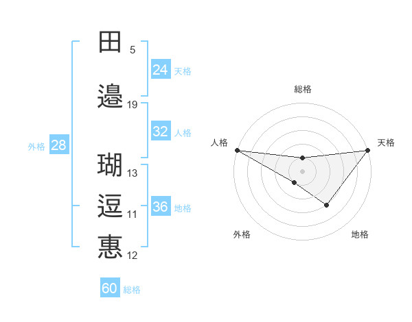 田邉 瑚逗惠さんを姓名の画数から五運を鑑定