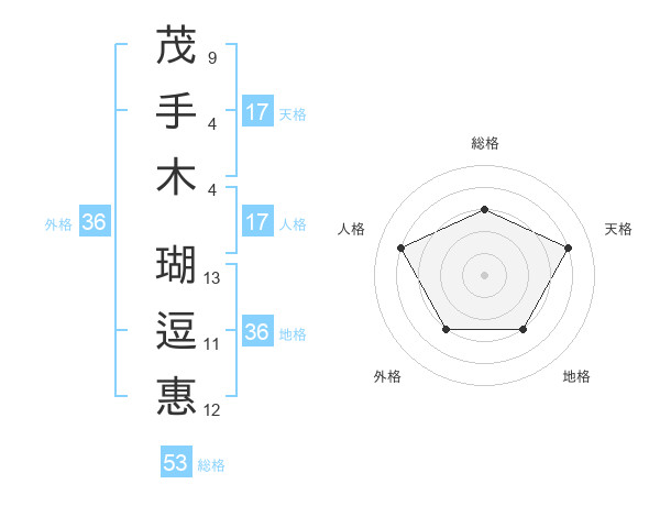 茂手木 瑚逗惠さんの天格は17画の4点!