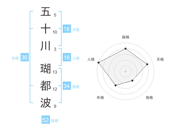 五十川 瑚都波さんの総格は52画の4点!