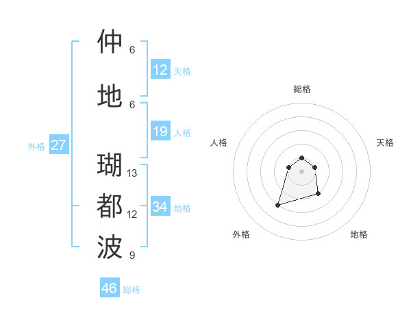 仲地 瑚都波さんの総格は46画の1点!