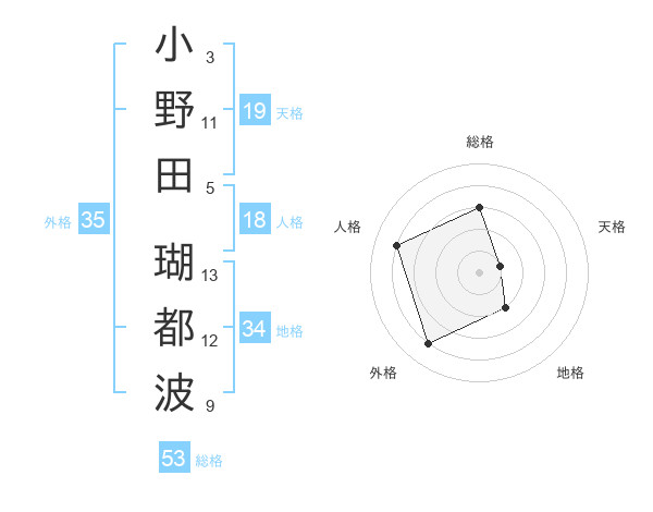 小野田 瑚都波さんを姓名の画数から五運を鑑定