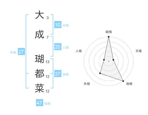 大成 瑚都菜さんの総格は47画の5点!