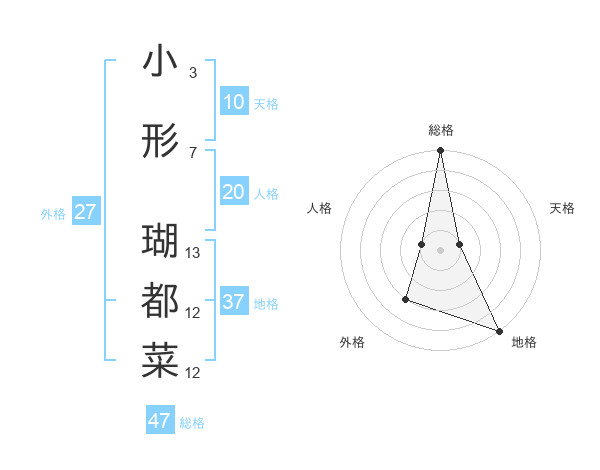 小形 瑚都菜さんの総格は47画の5点!