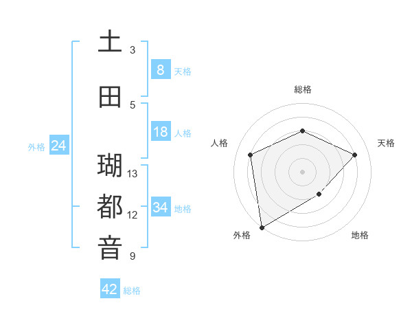 土田 瑚都音さんの総格は42画の3点!