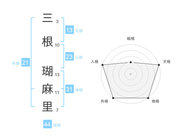 三根 瑚麻里さんを姓名の画数から五運を鑑定
