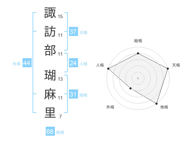 諏訪部 瑚麻里さんの総格は68画の4点!