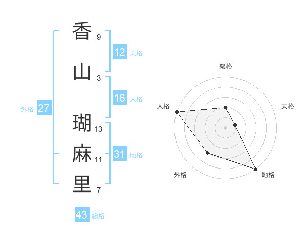 香山 瑚麻里さんの天格は12画の1点!