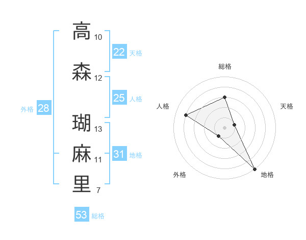 高森 瑚麻里さんを姓名の画数から五運を鑑定