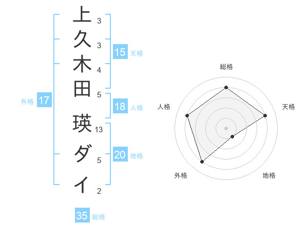 上久木田 瑛ダイさんを姓名の画数から五運を鑑定