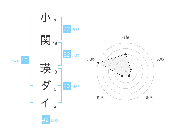 小関 瑛ダイさんの総格は42画の3点