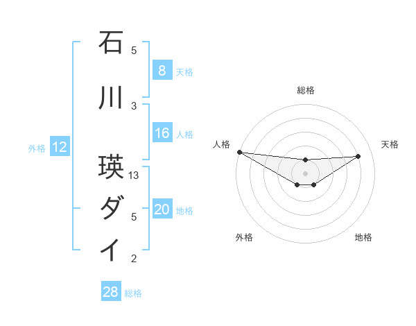 石川 瑛ダイさんを姓名の画数から五運を鑑定
