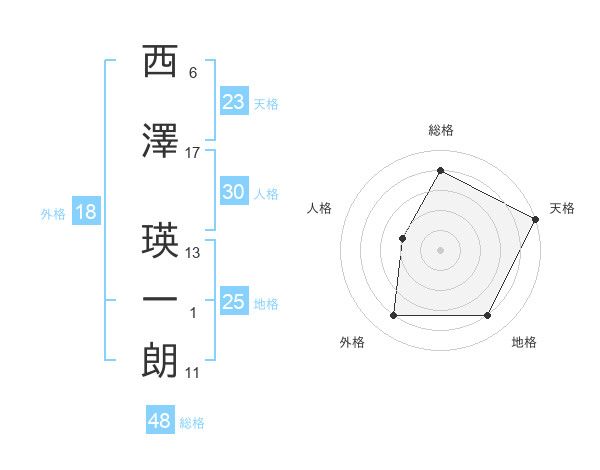 西澤 瑛一朗さんを姓名の画数から五運を鑑定
