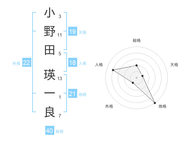 小野田 瑛一良さんを姓名の画数から五運を鑑定