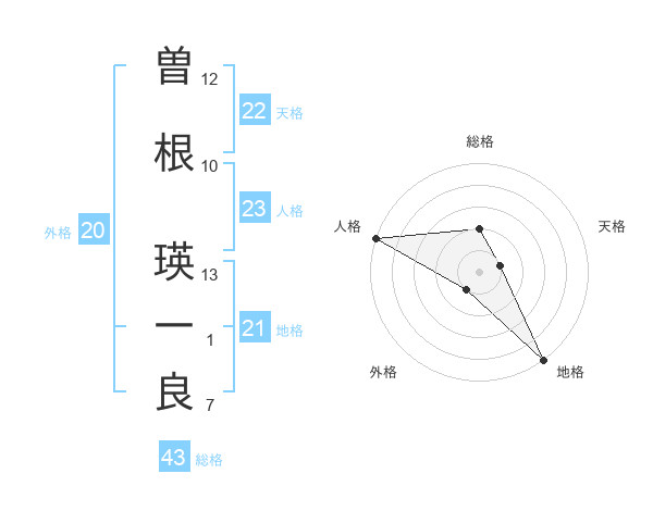 曽根 瑛一良さんを姓名の画数から五運を鑑定