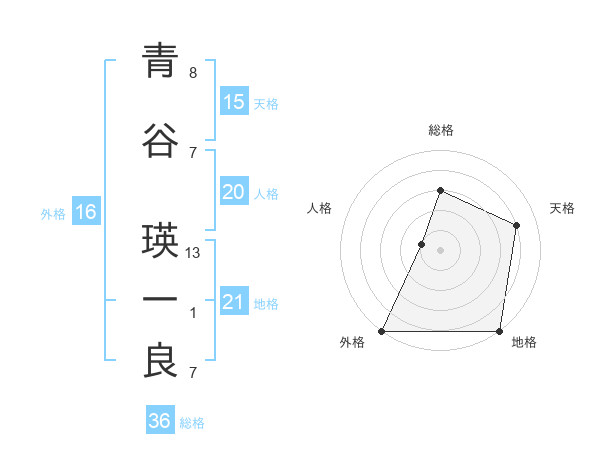 青谷 瑛一良さんの地格は21画の5点!