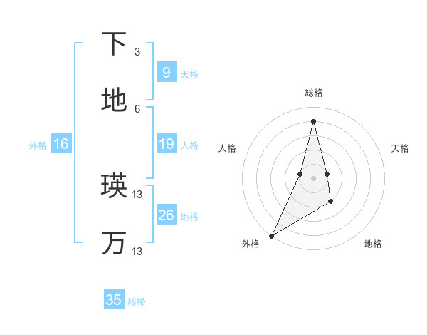 下地 瑛万さんを姓名の画数から五運を鑑定