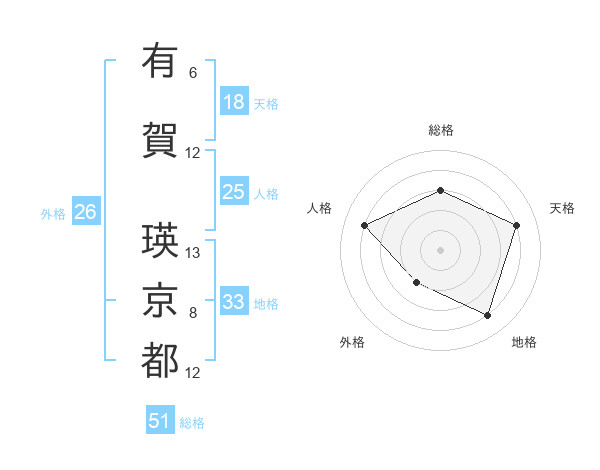 有賀 瑛京都さんを姓名の画数から五運を鑑定
