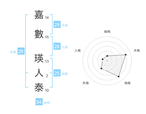 嘉數 瑛人泰さんを姓名の画数から五運を鑑定