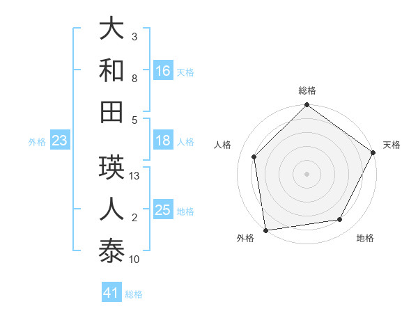 大和田 瑛人泰さんを姓名の画数から五運を鑑定