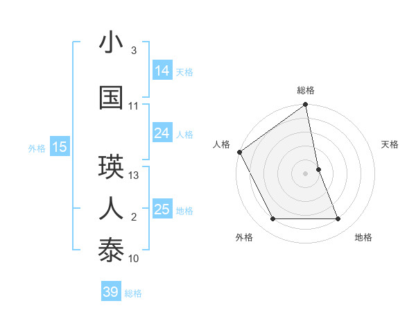 小国 瑛人泰さんを姓名の画数から五運を鑑定