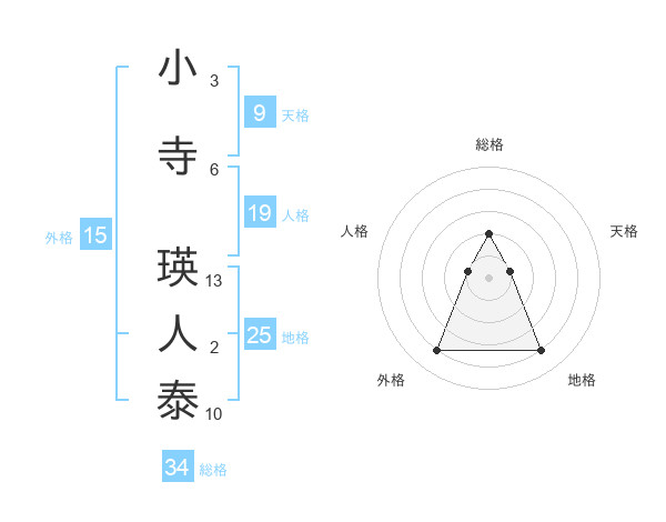 小寺 瑛人泰さんを姓名の画数から五運を鑑定