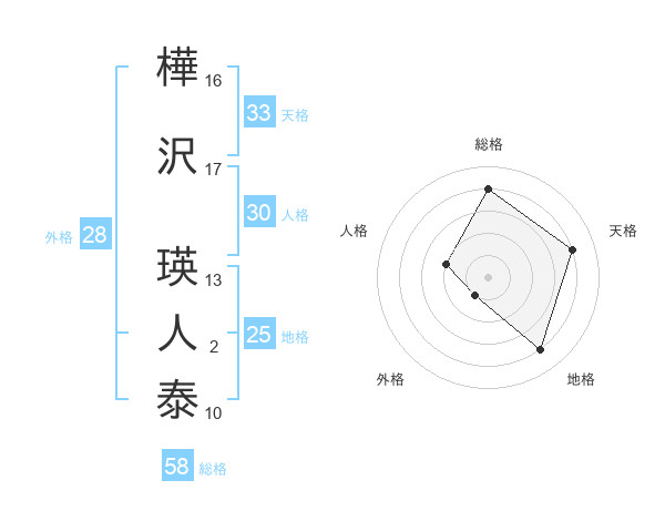 樺沢 瑛人泰さんを姓名の画数から五運を鑑定