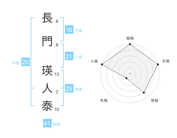長門 瑛人泰さんを姓名の画数から五運を鑑定
