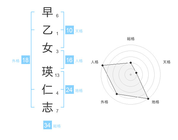 早乙女 瑛仁志さんの総格は34画の2点!