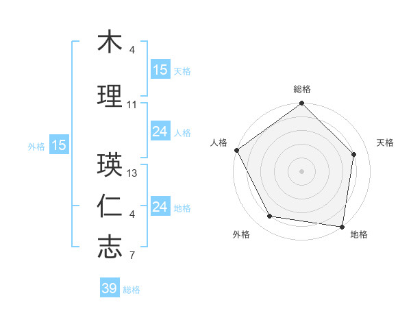 木理 瑛仁志さんの総格は39画の5点!