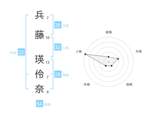 兵藤 瑛伶奈さんの天格は26画の2点!